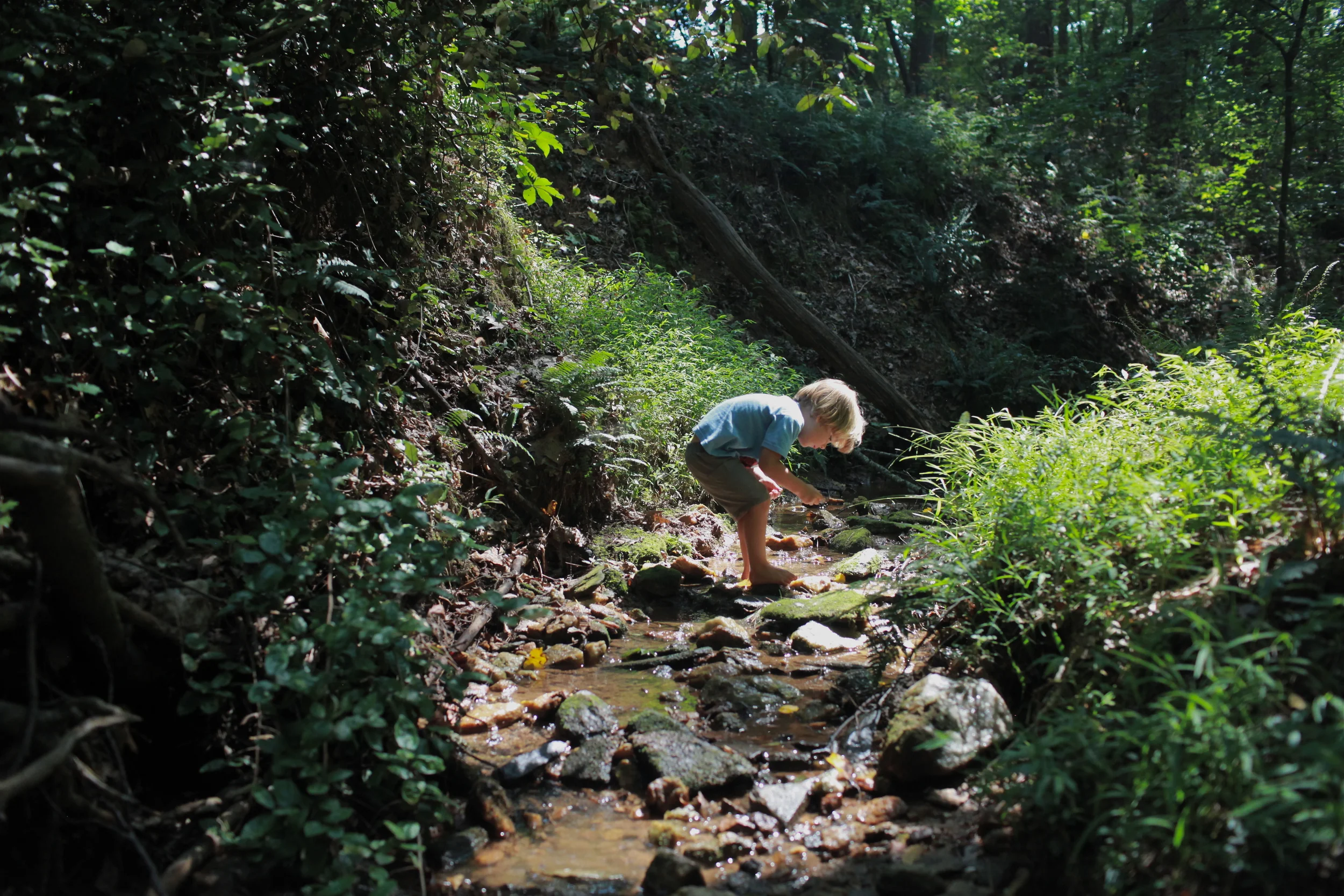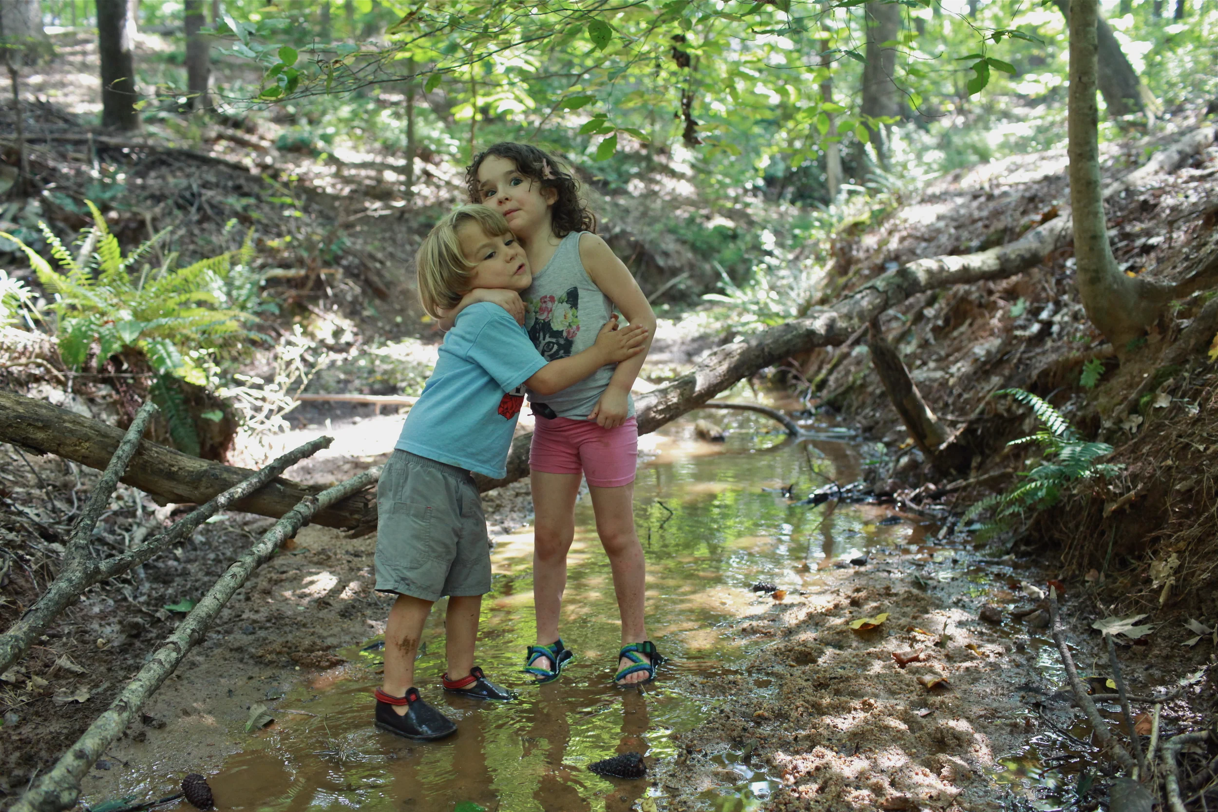 We went hiking with friends two weeks ago through the most magical forest nearby, but I wanted to do our search for water a little differently this time, the wet stuff found even closer. A major component to a few of the curricula I am using urges us to start incorporating our neighborhood and general areas of woods and fresh water into our days with nature. Allowing time with nature to become more approachable, other than simply being in that backyard we have worked so hard to give them. Our yard is about as fun as it can get, but they know every nook and cranny by heart, now is the time for more adventure. With my new adventurous, even within the neighborhood, spirit I contacted our neighbor to let him know that we would finally be making the trek that he had offered to us for years. The descent into a large gully of one huge neighborhood block to the little known spring that happens to be right across the street. I've even been told that there was a tiny mill along the rivulet.
