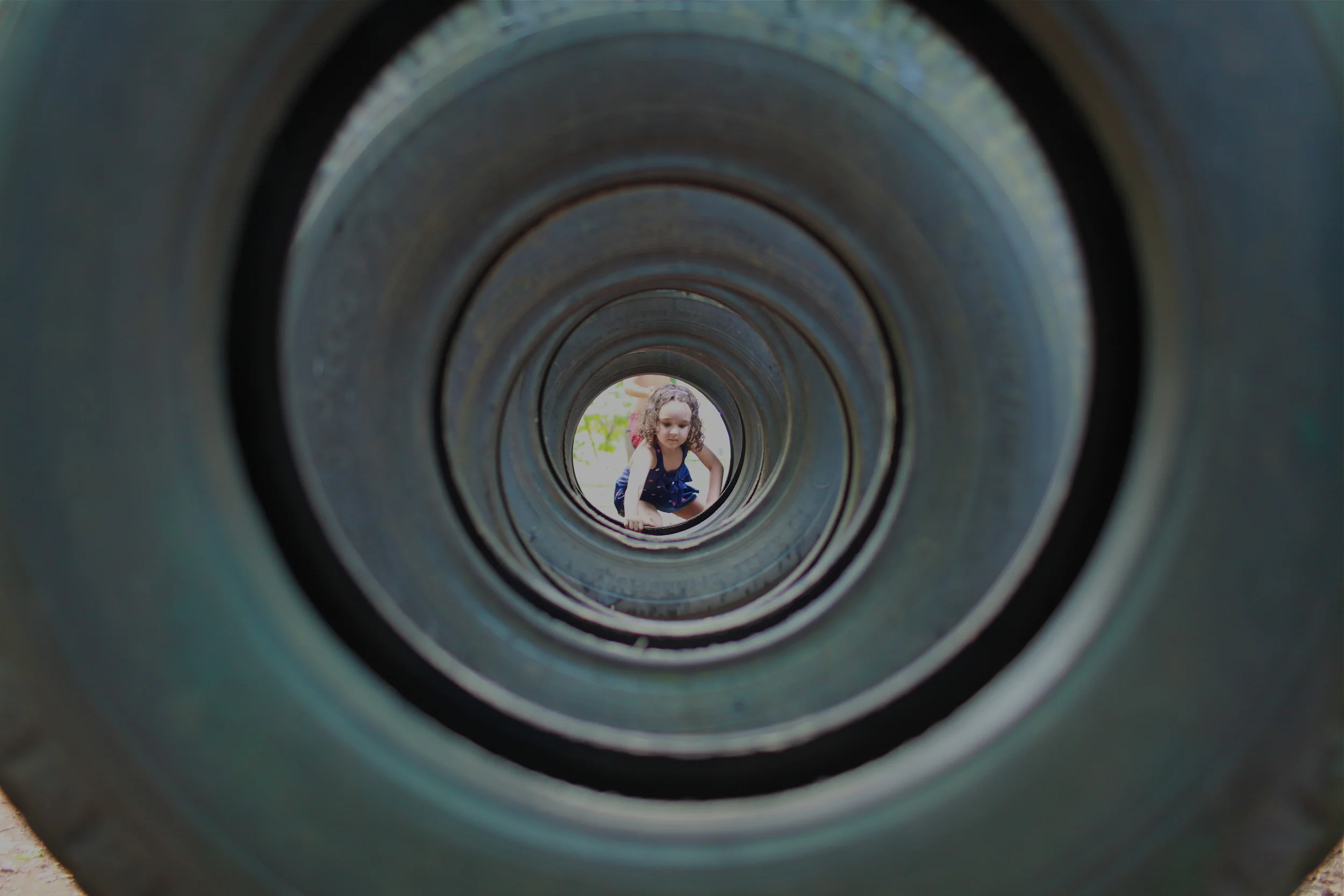 Rain set in and we took cover for a bit at the van, due to my camera. The precipitation barely lasted 5 minutes, so the inseparable twosome ran straight to the park and blew down the old school slide. Another note of caution, when the slide or your person is wet you certainly gain some speed, this first slide was no problem other than A LOT of dirt, But the plastic slide was, Singer busted her fanny and fingers. There's a lot more playground, mostly wooden planks and these awesome tires to crawl through. You also have the option of a modern playground with the plastic slides to the left of the older structure, but our crew preferred the green wooden maze. A major bonus of this area is the shade, you also have the option of hiking trails. We will hit those up with a group or Papa.