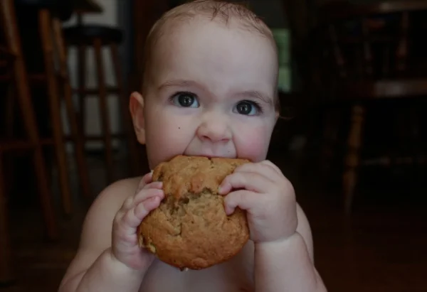 Preheat oven to 350. In a large bowl, mash bananas with a fork. Add ⅓ cup of oil or butter, honey, egg, milk or yogurt, and vanilla to mashed bananas. Mix well. In a separate bowl mix flour, ½ cup oats, baking powder, and salt together. Fold flour into banana mixture. Add batter to a well greased or lined muffin pan. Then in the now empty bowl from flour mixture mix remaining 3 Tbsp of butter or oil with 3 Tbsp of oats, and 1 tsp of sugar. Spoon over the tops of muffins before baking. Place in 350 oven for 15-18 minutes. Allow to cool for a few minutes before removing to serve.